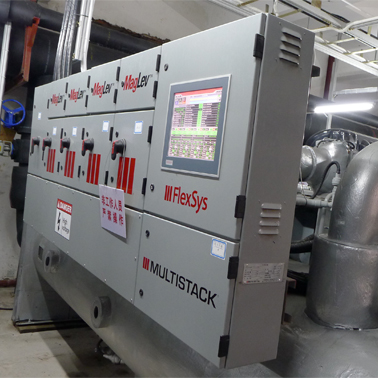 Oil-free chillers use magnetic bearing system. Running noise is down to 70dB with extremely low vibration which is ideal for hospital. The compact size and light weight of the units enable free access through elevators or stairs and doorways to the confined machine room. MULTISTACK’s unique MV7 control system enables energy-efficiency control for the chillers, pumps and cooling tower, further reducing overall energy consumption and saving energy by 48%.