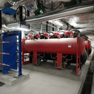| 1、設備選型。選用6臺捷豐滿液式磁懸浮空調變頻離心式冷水機組MS0762,單機制冷量為600RT,總制冷量為3600RT。 |